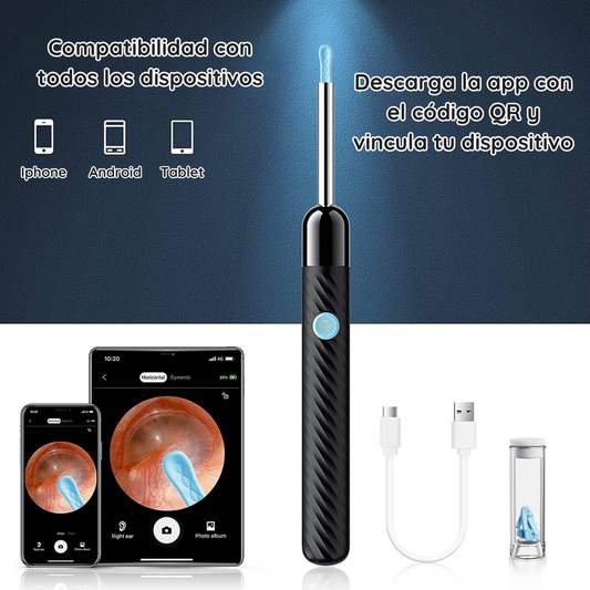 Limpia oídos con cámara | App para celular y 5 puntas intercambiables